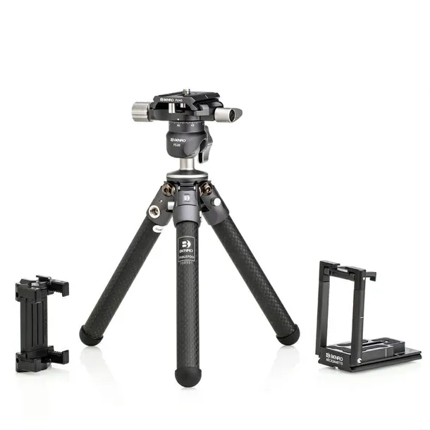Benro TablePod Pro Kit to nowoczesny, funkcjonalny statyw stołowy z małą głowicą kulową FS20 i szybkozłączką ArcaSmart 70 w zestawie. Jego przeznaczeniem jest stabilizowanie małego aparatu lub smartfona podczas fotografowania lub filmowania.