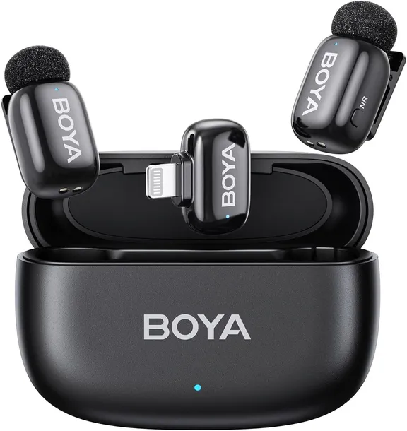 Zestaw Boya mini 2-03 jest idealny do nagrywania za pomocą inteligentnych urządzeń Apple ze złączem Lightning. Zestaw zawiera dwa mikrofony nadawcze, jeden odbiornik Lightning i etui ładujące, które zapewnia do 30 godzin pracy na baterii.Zanurz się w miniaturowym świecieWażąc zaledwie 5 gramów — mniej więcej tyle, co dwie monety — BOYA mini 2 jest jednym z najlżejszych i najbardziej kompaktowych mikrofonów na rynku. Jego minimalistyczny design idealnie komponuje się z ubraniem, zapewniając dyskretny wygląd i całodzienny komfort.Redukcja szumów AI, inteligentniejsza niż kiedykolwiekPo raz pierwszy BOYA mini 2 zapewnia nieprzerwany i wciągający dźwięk, automatycznie dostosowując redukcję szumów do otoczenia za pomocą BOYA Intelligence. Twój głos pozostaje wyraźny i szczegółowy nawet w hałaśliwym otoczeniu.Algorytm opracowany przez sztuczną inteligencję został wytrenowany na ponad 700 000 rzeczywistych próbek hałasu i ponad 20 000 godzin. Wykrywa i wycisza wszystko, od wiatru, klikania klawiatury i szelestu ubrań, po hałas koparek i silników samolotów, w ułamku sekundy.Redukcję hałasu AI można aktywować jednym naciśnięciem przycisku na nadajniku lub odbiorniku.